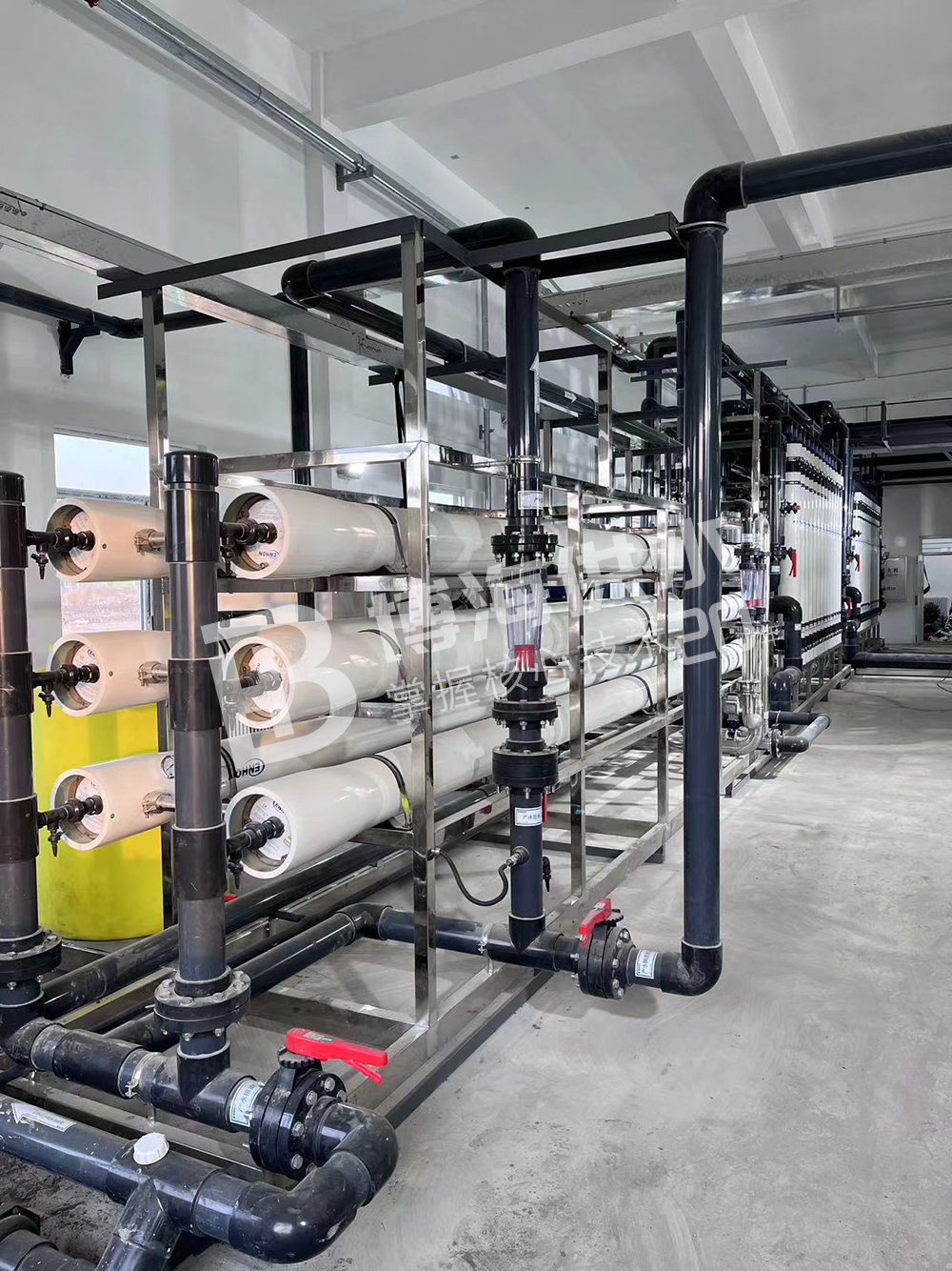 出水水質: 電導率≤15us/cm;細菌去除率≥99.6%;顆粒(>0.2μm)<1個/ml;離子截留率97%-99%;有機物截留率>99%